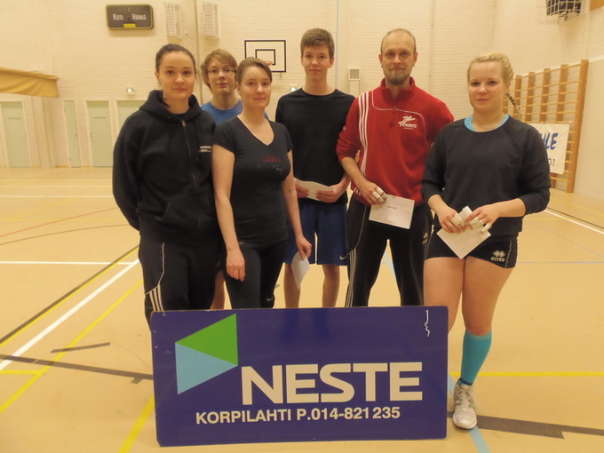 Korpilahden Pyrinnön perinteinen lentopallon sekapeliturnaus pelattiin loppiaisena 6.1. Turnaus keräsi 32 innokasta palloilijaa joista muodostettiin kuusi erittäin tasaväkistä joukkuetta.. Kuvassa voittajajoukkue Pokerit, jossa pelasivat Jere Järvinen, Kari Nättinen, Henna Pollari, Marko Nieminen sekä kuvasta puuttuva Olli Weijo.