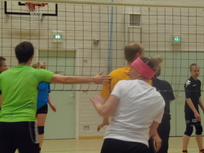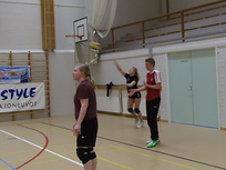 Pyrinnön järestämä perinteinen pääsiäisen lentopallon sekapeliturnaus pelattiin tänään Korpilahdella. Turanukseen osallistui ennätysmäärä pelaajia, eli kaikkiaan 62. Tulijoita olisi ollut enemmänkin, mutta jouduimme valitettavasti rajoittamaan osallistujamäärää, jottei turnaus olisi venynyt ajallisesti ylipitkäksi. Pelaajista muodostettiin kahdeksan joukkuetta. Hauskaa tuntui osallistujilla olevan ja pelit olivat tasaisen tiukkoja.