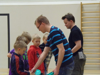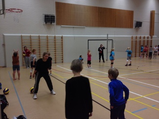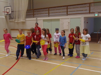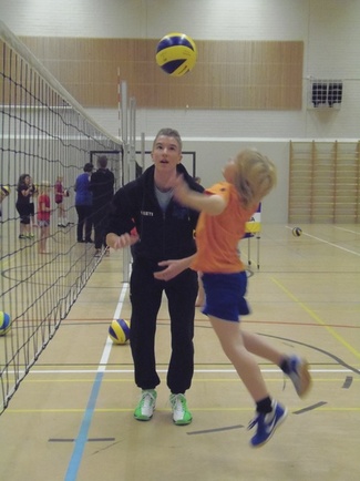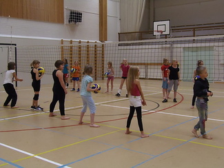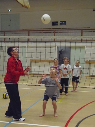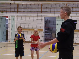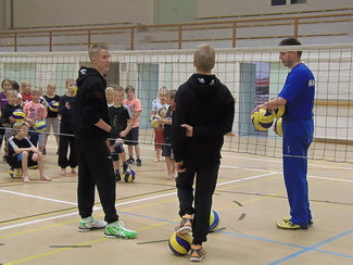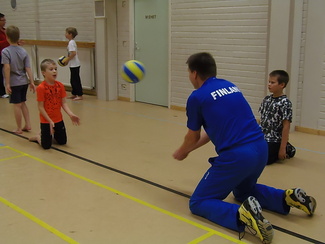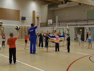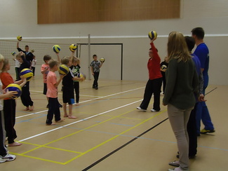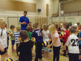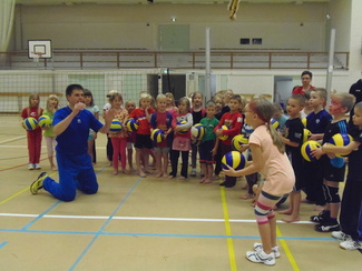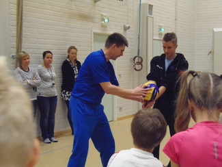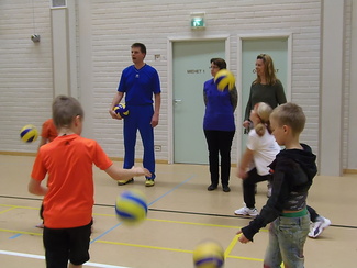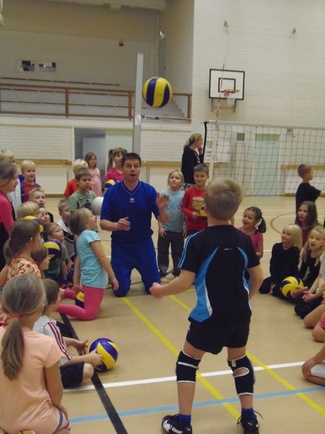 Lentopalloliiton aluepäällikkö Pertti Kulluvaara vieraili Korpilahden yhtenäiskoulussa innostamassa 1-4 -luokkalaisia lentopallon pelaamisen pariin.