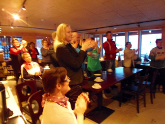 Joukkue kokoontui eilen katsomaan yhdessä finaalilähetystä läheistensä ja yhteistyökumppaneidensa kanssa Kahvila-Ravintola Satamakapteeniin kakkukahvien merkeissä.