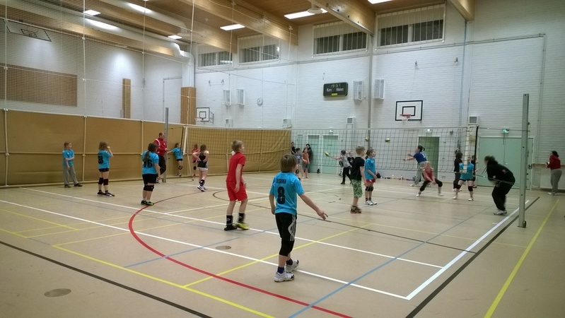 Lentopalloliiton aluepäällikkö Pertti Kulluvaara vieraili Korpilahden yhtenäiskoulussa innostamassa 1-4 -luokkalaisia lentopallon pelaamisen pariin.