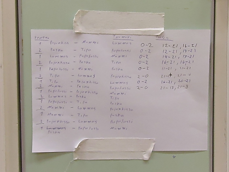 Huom! Viimeisessä pelissä vastustajalta sairastui pelaaja ja heillä ei ollut vaihtopelaajaa.