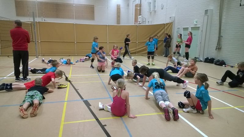 Apuohjaajina toimivat opettajat, Mira Nieminen sekä paikalliset lentopallonuoret Veeti Nieminen ja Atte Saarinen. Illalla lisäoppia valmennukseen saivat valmentajat ja nuoret.